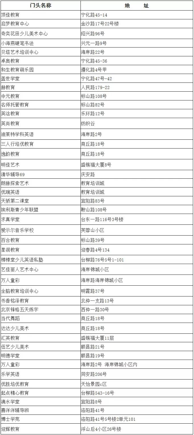李沧区第一批校外培训机构整改名单